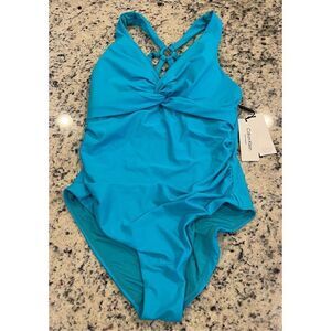 Calvin Klein Standard V-neck Twist Front Tummy Control One Piece Swimsuit