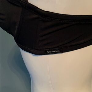 Black Underwire strapless bra. No padding. Preowned. No Strap included but can be worn with a strap. Rubberized elastic on top and bottom to keep in place.