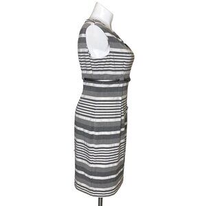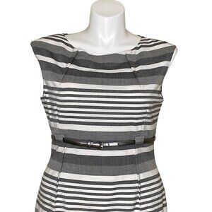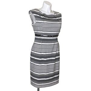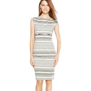 Calvin Klein Striped Belted Sheath Dress Gray White Empire Waist Women's Size 14