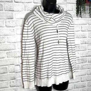 Calvin Klein Striped Cowl Neck Drawstring Sweatshirt Long Sleeve Top Size Medium