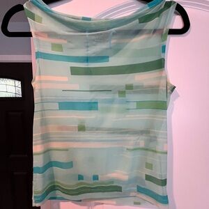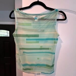 This stylish sleeveless top features a modern striped design in shades of green. Perfect for casual outings or a day at the office, it offers both comfort and style.