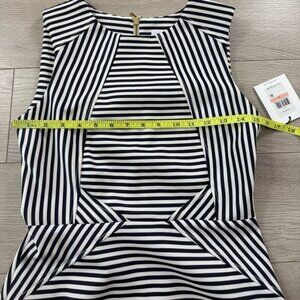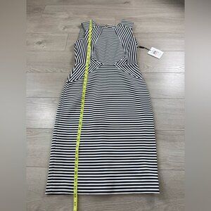 Calvin Klein Striped Navy and White Sleeveless Midi Career Office Dress