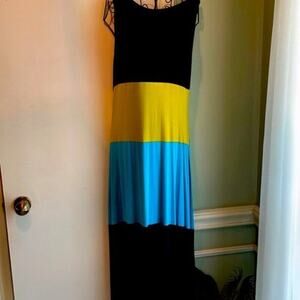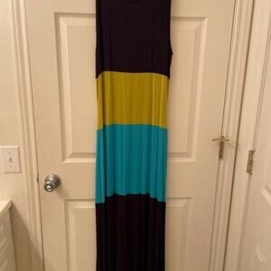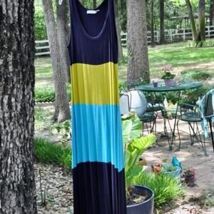 This sleeveless colorblock maxi dress is perfect for block parties and casual entertaining. Pair this pull-on style with sandals for an effortless outfit.