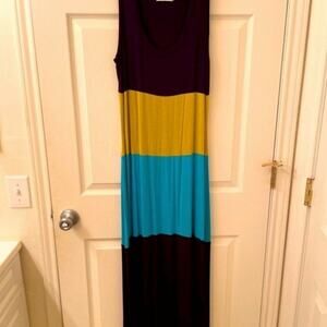 This sleeveless colorblock maxi dress is perfect for block parties and casual entertaining. Pair this pull-on style with sandals for an effortless outfit.