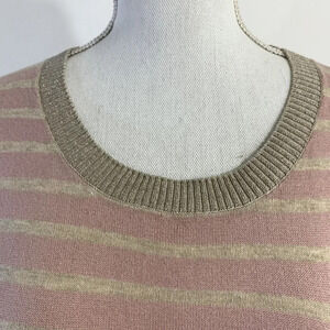 Calvin Klein Striped Sweater Pink Sparkle 3/4 Sleeve Cotton Blend Large.