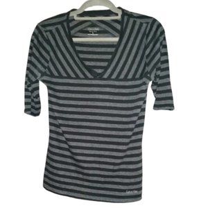 Calvin Klein Striped V Neck Tee Stripe Top Black Gray Grey Stripes Quick Dry L