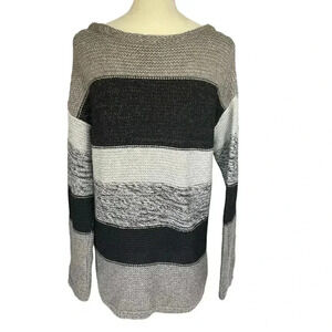 Calvin Klein Stripes Cable Knit Pullover Oversized Sweater Crew Neck Women Sz M