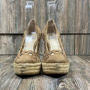 Calvin Klein Womens Espadrille Wedge Heels Beige Slip On Cutouts High Pumps 6 M