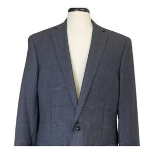 Calvin Klein Suit Jacket Mens 44L Long Gray Check Two Button Wool