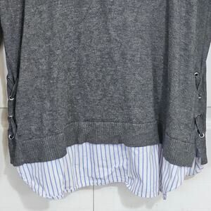 Grey sweater with faux pinstripe button-down shirt hem. Excellent condition.