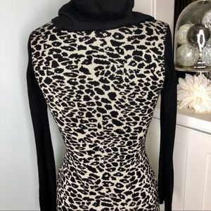Calvin Klein Cowl Neck Sparkle Animal Print Leopard Sheath Dress Long Sleeve Sweater Dress Turtleneck Casual Career Office