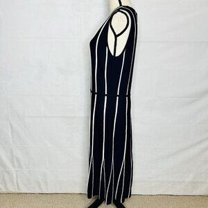 Calvin Klein Sweater Dress Size M Sleeveless Long Navy Blue Striped
