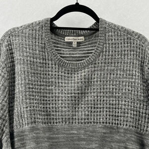 Calvin Klein Sweater Men Sz XL Pullover Crewneck Marled Waffle Knit Heather Gray