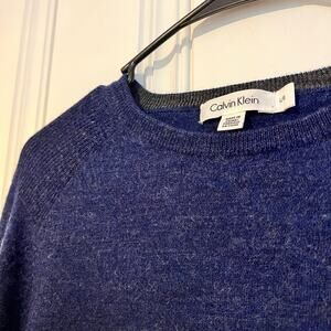 Calvin Klein Sweater Mens Large Blue Pullover Extra Fine Merino Wool Long Sleeve
