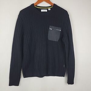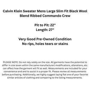 Calvin Klein Sweater Mens Large Slim Fit Black Wool Blend Ribbed Commando Crew