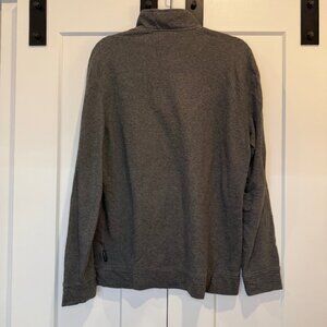 This is a Calvin Klein Men's Size Medium Pullover Sweater. It is a Quarter Zip in Gray. It's in excellent used condition, no holes, stains, or tears. Sweater is missing the inside care tag.