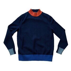 Calvin Klein Sweater Mens Small Blue Colorblock Knit High Neck Pullover