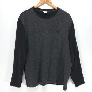Calvin Klein Sweater Mens XL Black Gray Crew Neck Pullover Logo Long Sleeve