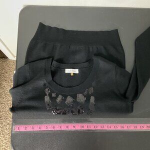 Calvin Klein Sweater Women Sz M Black Sequin Wool Blend Round Neckline Pullover