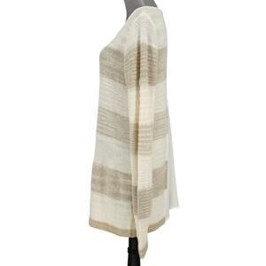 Calvin Klein Sweater Women's Large Ivory Beige Stripe Chiffon Back Pleat Pullover