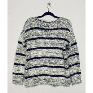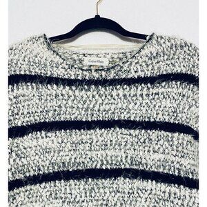 Calvin Klein Sweater Womens Medium Birch Black Striped Chenille Knit Slouchy