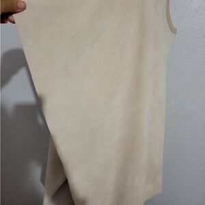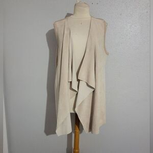 Calvin Klein Sweater Beige Vest Sleeveless Drape Open Front Faux Suede