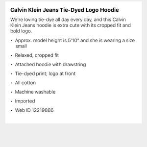 New with tags Calvin Klein hoodie. Oversized , relaxed fit. Pink Tie-Dye.