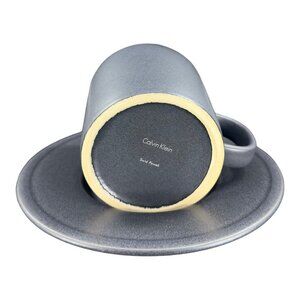 Calvin Klein Swid Powell Ceramic Dark Gray Matte Stoneware Teacup Saucer Set Japan