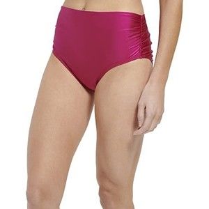 Dive into style and comfort with the Calvin Klein Women's Swim Bottom in stunning Fuchsia Shimmer. Crafted from a luxurious blend of 83% Nylon and 17% Spandex, this swim bottom offers a snug yet comfortable slim fit, perfect for all your water activities. Featuring a classic high-waisted design with full coverage, these bikini bottoms ensure you feel secure and stylish. The fabric provides UPF 30 protection, safeguarding your skin from harmful UVA and UVB rays. Whether you're at the beach, pool, or enjoying water sports, this swimwear is designed for durability and style. It comes fully lined with a chic ruched detail and is easy to care for with hand wash only instructions. Enjoy a blend of fashion and function with Calvin Klein's dependable swimwear.