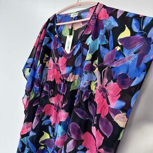 Calvin Klein Swim Pool Beach Sheer Poncho Coverup Multicolor Floral L/XL NWT