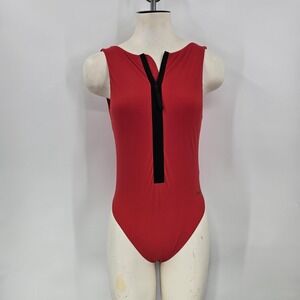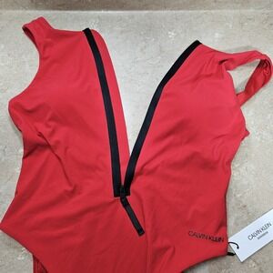 Calvin Klein Swimsuit Womens Small Red One Piece Zip Front Swimwear Logo New