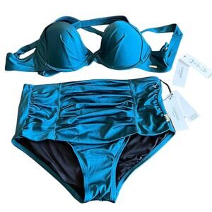 Calvin Klein Swimwear Size L 2 pc Teal Vintage Look Swimsuit NWT Pin Up Girl