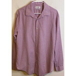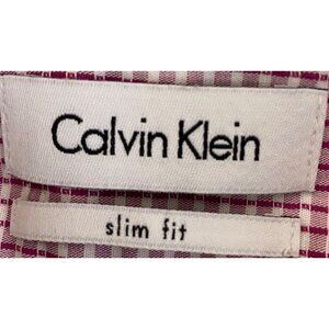 Calvin Klein Sz 17 34/35 Slim Fit Shirt Plaid Pink White Long Sleeve Slim Fit