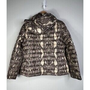 Calvin Klein Sz M Down Packable Coat Y2K Snakeskin Brown Leopard Warm Comfy