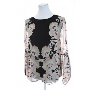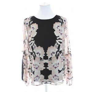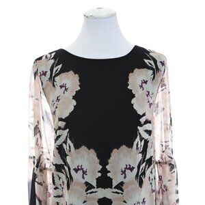 Calvin Klein Sz S Floral Print Chiffon Peasant Top Blouse Black