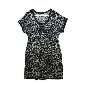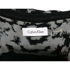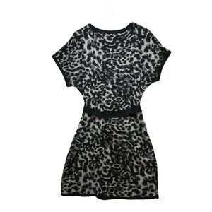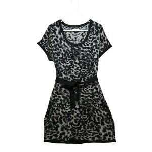 Calvin Klein Sz XL Black Gray Leopard Belted Sweater Dress Short Sleeve.