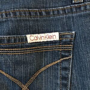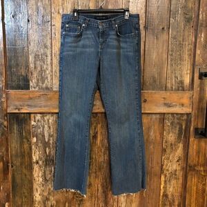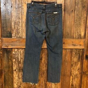 Calvin Klein Sz 10 Blue Denim Whiskering Raw Hem Flared Western Jeans