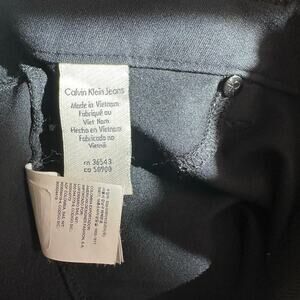 Calvin Klein mid-rise, black, super soft denim jeans. Straight leg with a minor tapering at bottom, contoured fit. Zip fly, button closure.