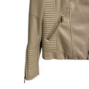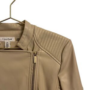 Calvin Klein Tan Faux Leather Moto Jacket Size Small