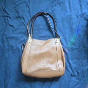 Calvin Klein Tan Leather Shoulder Tote with Gold Hardware