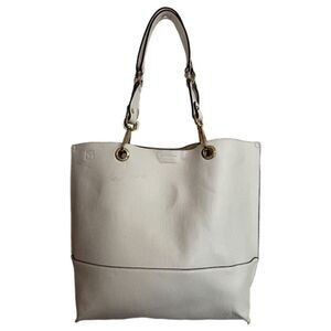 Calvin Klein Tan White Blue large reversible Pebbled Faux Leather Tote Bag