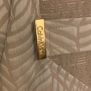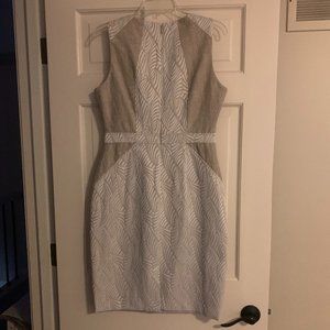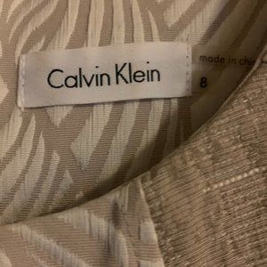 Calvin Klein Tan White Sleeveless Jacquard Sheath Dress With Gold Logo Hardware