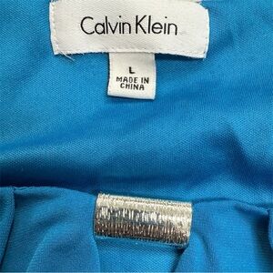 Calvin Klein dressy tank top. Size large. Front keyhole feature with silver tone bead. Fully lined. Side ruching for form fit.