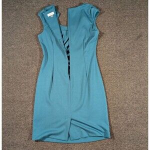 Calvin Klein Teal Sleeveless Stretch Ruched Square Neck Women Dress Size 12