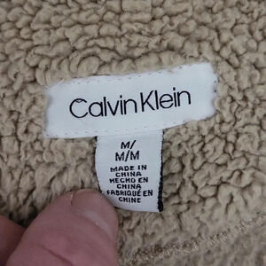 Calvin Klein Teddy Bear Full Zip Long Sleeve Sherpa Jacket Beige Womens Size Med