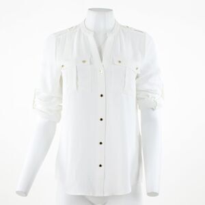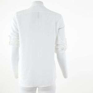 Calvin Klein Textured Roll Tab Button Down Soft White Blouse