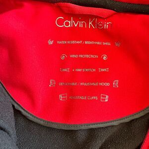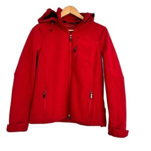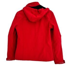 Calvin Klein Thermal Softshell Hoodie Jacket Women's Size M Red in a preowned condition. Jackets is generally in a good shape with some darker spots on a sleeve and a front. Please see pictures for more details.