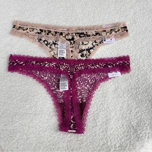 Experience the elegance of Calvin Klein's lightweight thong style panties, with lace accents. Designed with a chic and minimalistic style, these thongs feature a comfortable low-rise fit and a fashionable design, perfect for adding a touch of sophistication to your collection. New and never worn. YNF 11983, 15651