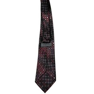Calvin Klein Tie 100% Silk Burgundy Red Gray Geometric Necktie