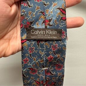 Calvin Klein Tie | Sea Blue with Red Pattern | Diagonal Striped | 100% Silk